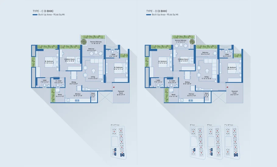 - Flat Size150 - 222 Sq ft
